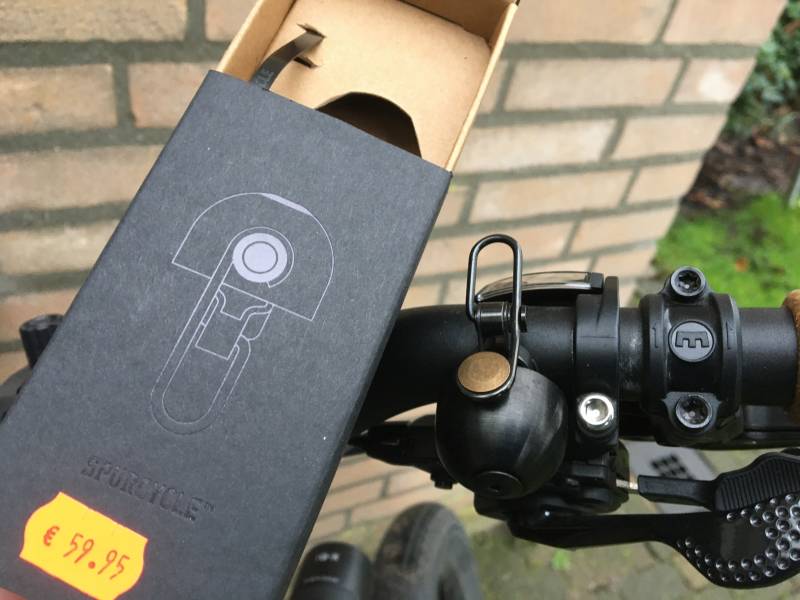 De Spurcycle komt in een mooie cadeauverpakking. Hierin zitten ook de 2 metalen spanbeugels, een brede lange en een smalle korte, waarvan je er 1 gebruikt. Bovenop de bel zit een kruiskopboutje waarmee je de bel, via de spanbeugel, muurvast om je stuur laat klemmen.